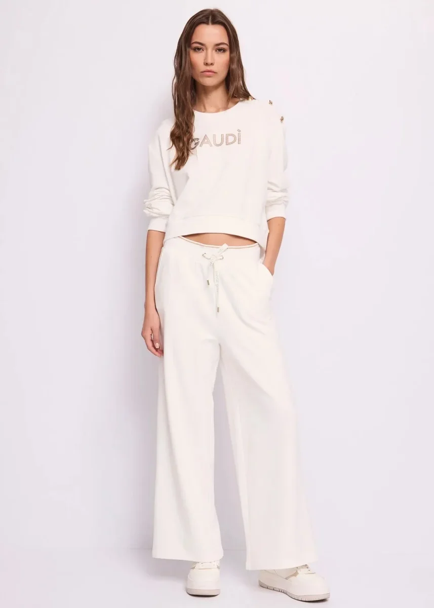 Scegli i pantaloni jogging in felpa di cotone con coulisse logata e tasche sui fianchi. Linea ampia per un look rilassato d’ispirazione sporty-chic.