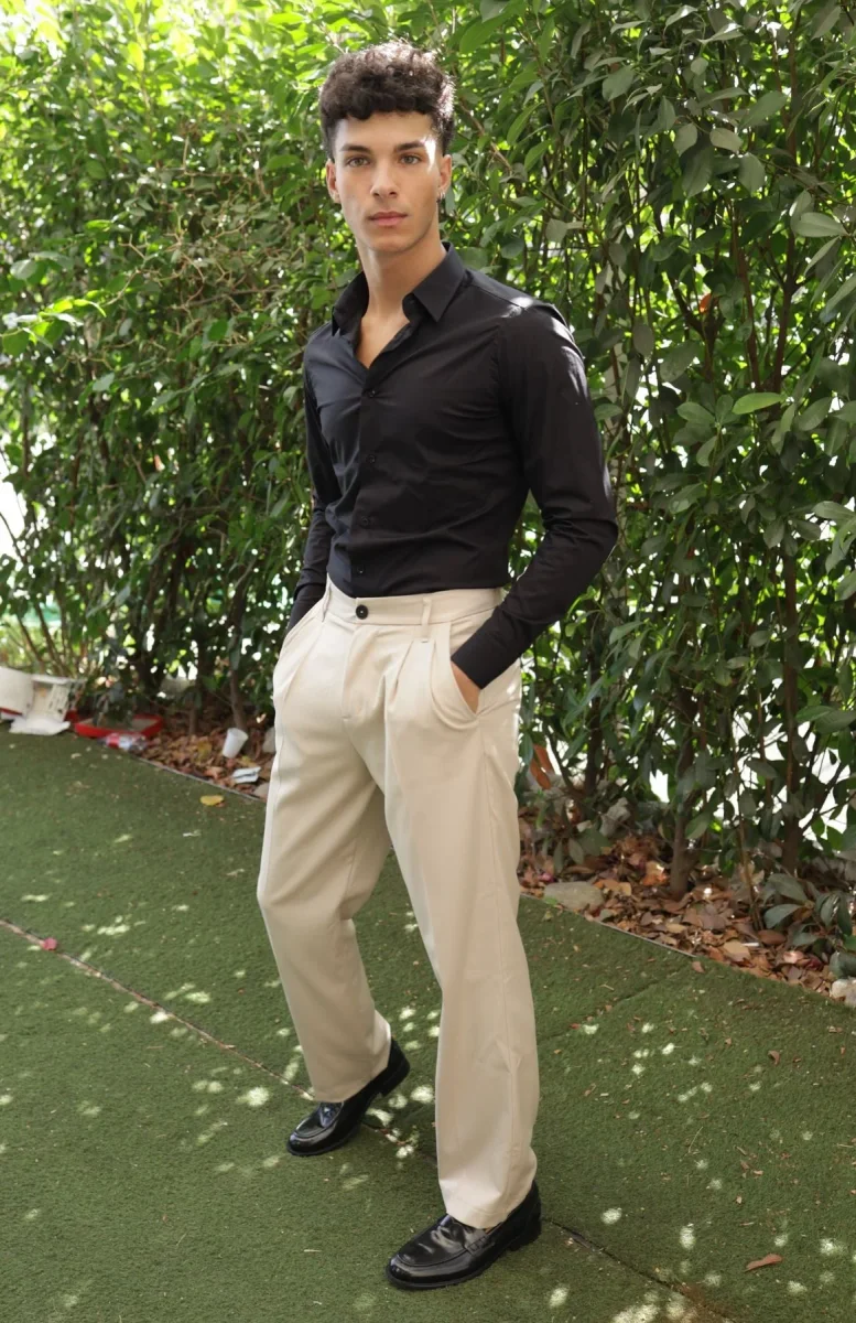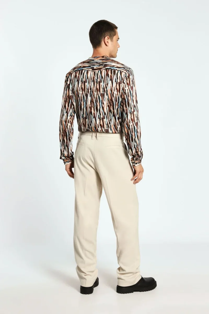 Pantaloni straight monocolour con pinces e piega stirata