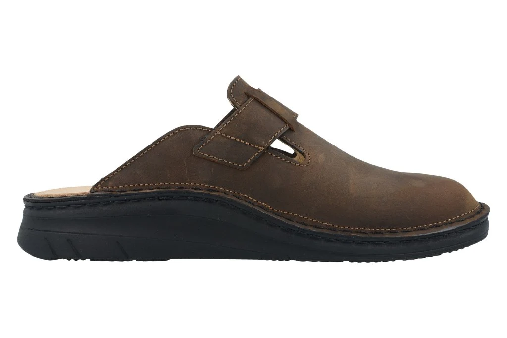 Sabot da uomo della linea Classic con una cambratura da 9 mm. L’ampia base d’appoggio favorisce comfort e stabilità durante la camminata. La punta larga regala ampio spazio alle dita, ideale anche per piedi robusti. La suola in poliuretano ammortizza l’impatto con il suolo a ogni passo, alleviando efficacemente l’affaticamento della colonna vertebrale. Questo modello è particolarmente adatto a chi deve stare in piedi a lungo.