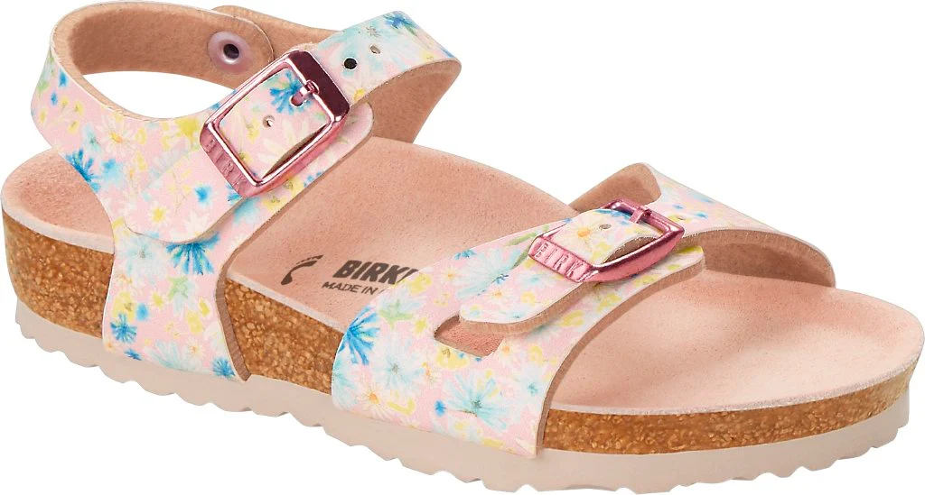 BIRKENSTOCK Rio è un sandalo sportivo-elegante con un cinturino per il tallone, che garantisce una vestibilità sicura e comoda, anche per i movimenti più selvaggi. Questa variante presenta un motivo floreale sbarazzino. Il processo di produzione alla base di questo articolo è un vero atto creativo, tanto che ogni paio è unico e non è uguale a nessun altro, come i fiori su un prato. I dettagli in colore coordinato completano l’aspetto raffinato del sandalo. La tomaia è in Birko-Flor®, un materiale sintetico resistente all’usura e delicato per la pelle.