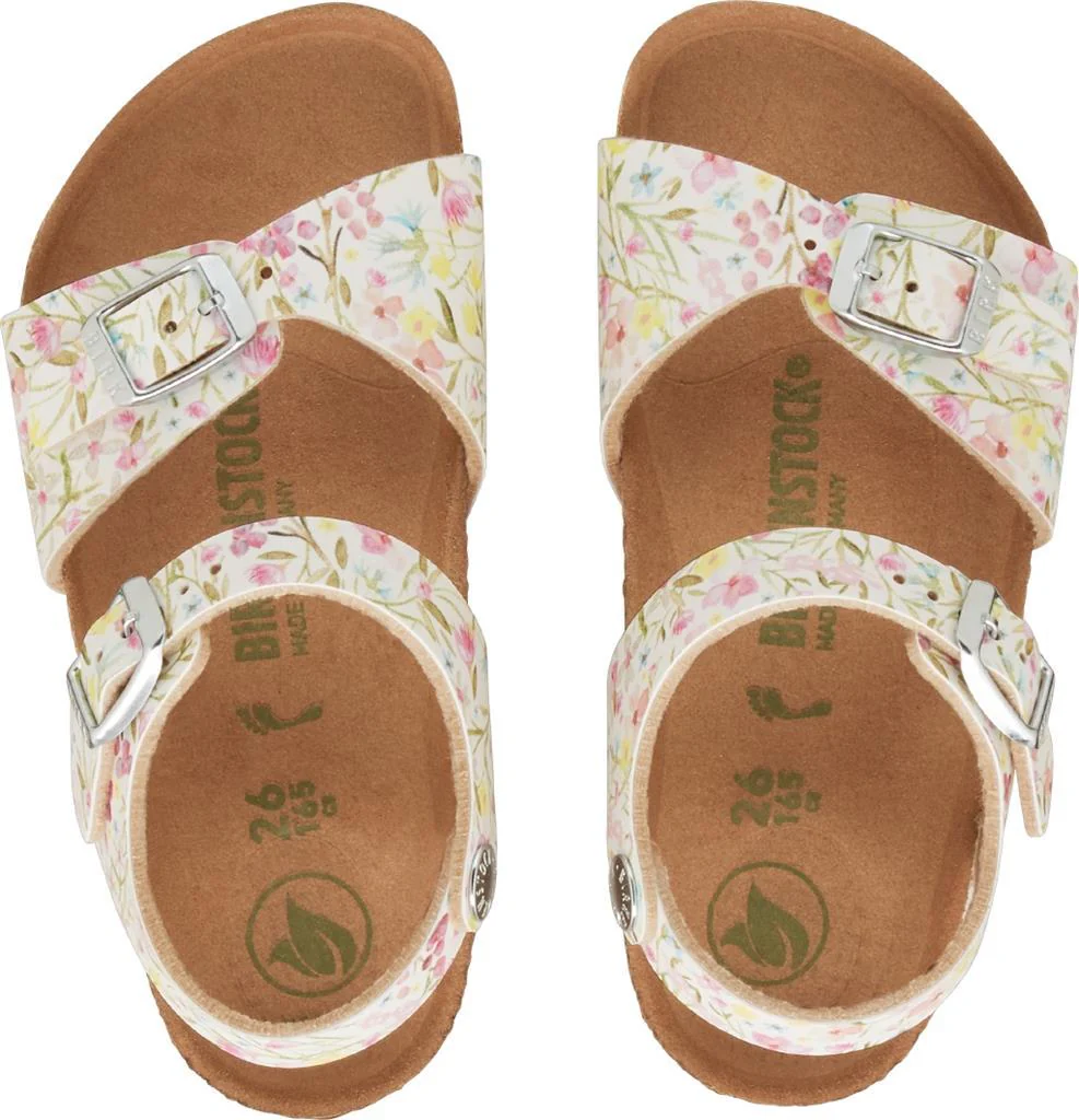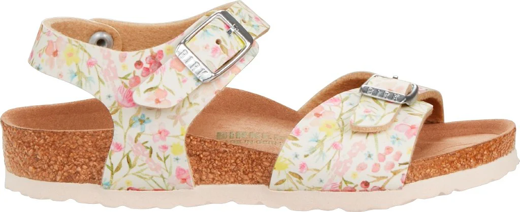 BIRKENSTOCK Rio è un sandalo sportivo-elegante con un cinturino per il tallone, che garantisce una vestibilità sicura e comoda, anche per i movimenti più selvaggi. Questa variante presenta un motivo floreale dipinto a mano in look acquerello. Il processo di produzione alla base di questo articolo è un vero atto creativo, tanto che ogni paio è unico e non è uguale a nessun altro, come i fiori stessi. La suola esterna in colore coordinato completa l’aspetto raffinato del sandalo. Questo sandalo è stato prodotto con un materiale rinnovato ed è ora disponibile in versione vegan. Il modello viene inoltre sottoposto a controlli effettuati da laboratori indipendenti per garantire che non vi siano parti di origine animale. La tomaia è in Birko-Flor®, un materiale sintetico resistente all’usura e delicato per la pelle.