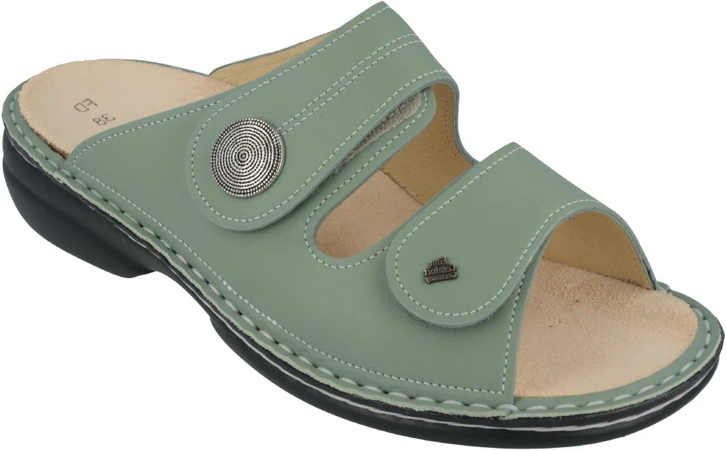 Ciabatta da donna della linea Classic con una cambratura da 20 mm. Due cinturini regolabili con velcro assicurano un adattamento al piede rapido e perfetto per garantire una tenuta sicura. L’ampia base d’appoggio favorisce comfort e stabilità durante la camminata. La punta larga regala ampio spazio alle dita, ideale anche per piedi robusti. La suola in poliuretano ammortizza l’impatto con il suolo a ogni passo, alleviando efficacemente l’affaticamento della colonna vertebrale.