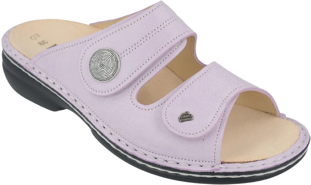 Ciabatta da donna della linea Classic con una cambratura da 20 mm. Due cinturini regolabili con velcro assicurano un adattamento al piede rapido e perfetto per garantire una tenuta sicura. L’ampia base d’appoggio favorisce comfort e stabilità durante la camminata. La punta larga regala ampio spazio alle dita, ideale anche per piedi robusti. La suola in poliuretano ammortizza l’impatto con il suolo a ogni passo, alleviando efficacemente l’affaticamento della colonna vertebrale.