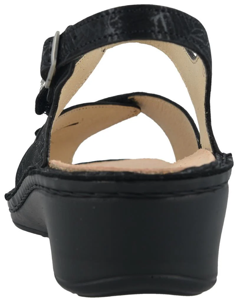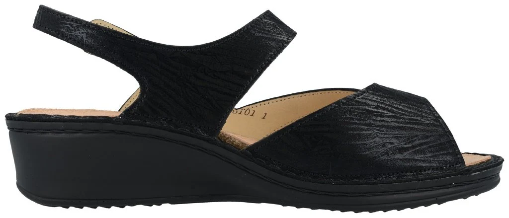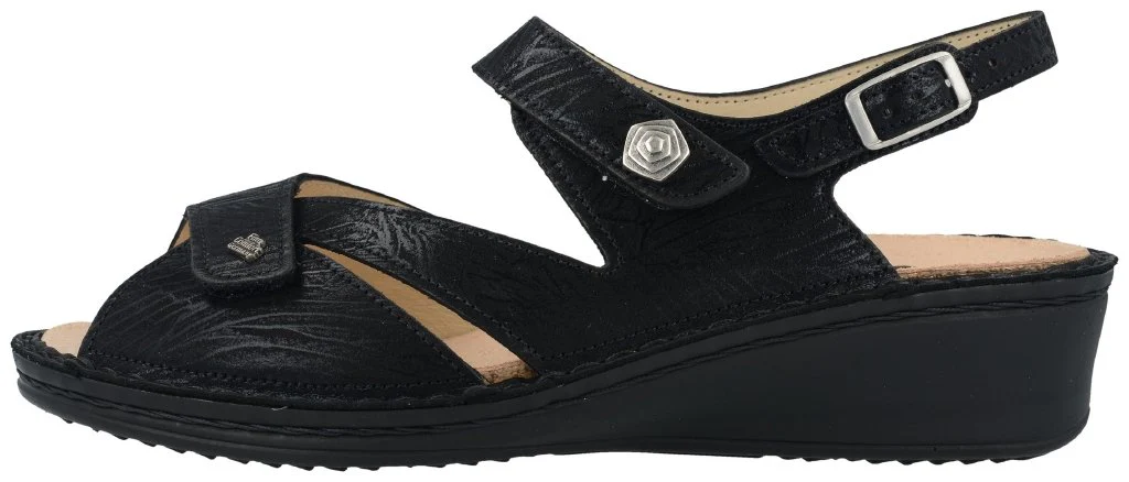 Sandalo da donna con una cambratura da 21 mm. Tre cinturini regolabili garantiscono un adattamento al piede rapido e perfetto per garantire una tenuta sicura. L’ampia base d’appoggio favorisce comfort e stabilità durante la camminata. La suola in poliuretano ammortizza l’impatto con il suolo a ogni passo, alleviando efficacemente l’affaticamento della colonna vertebrale. L’applicazione della suola tramite cucitura a mano rende la calzatura molto flessibile.