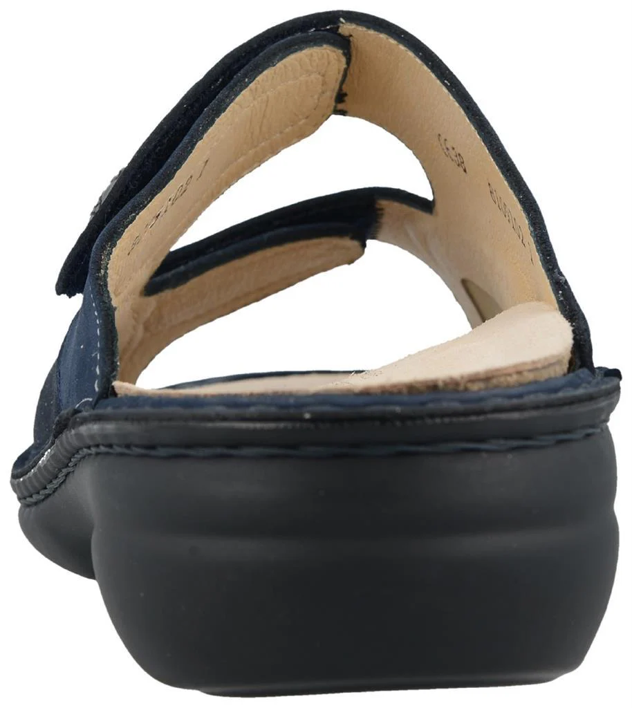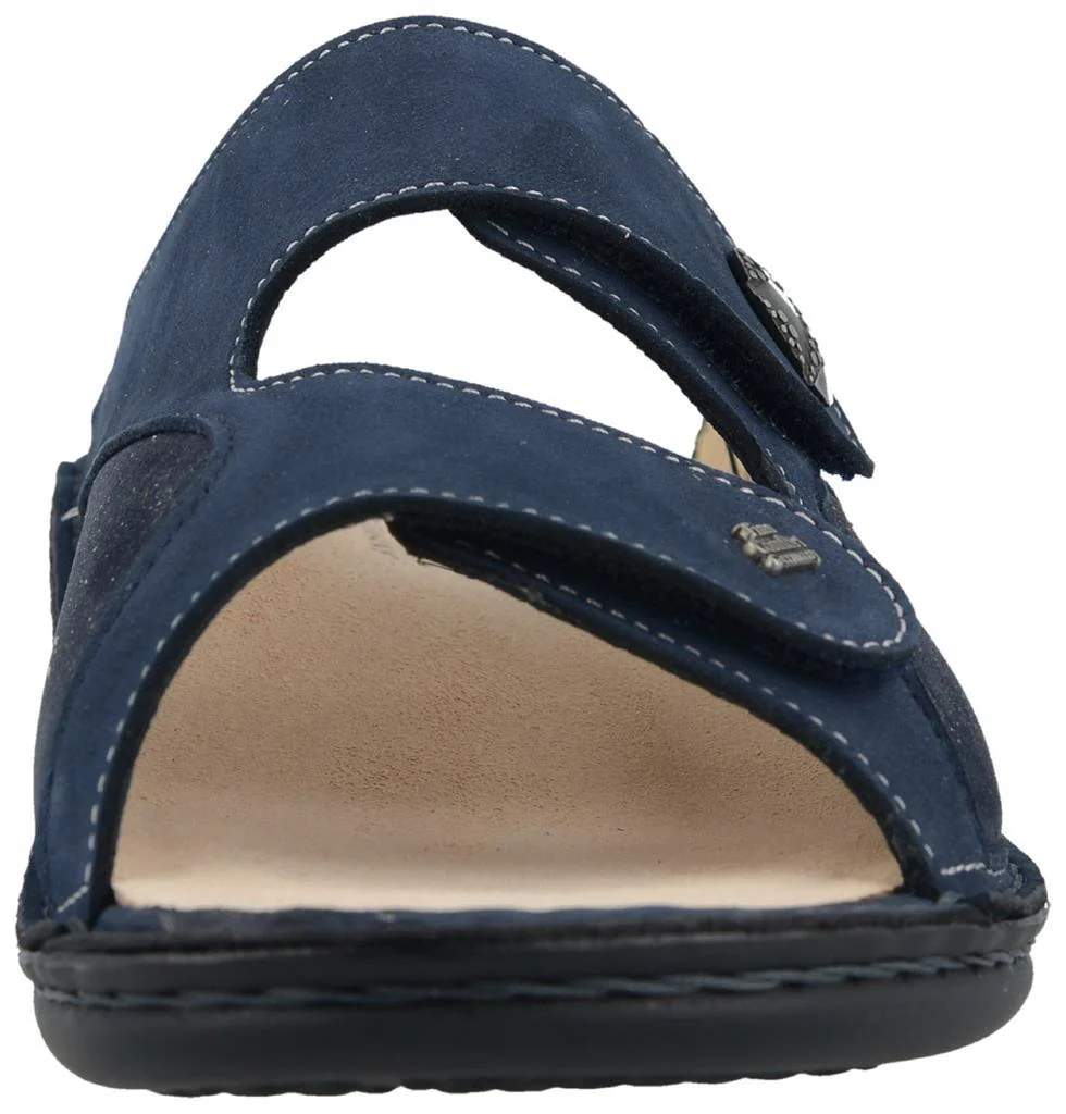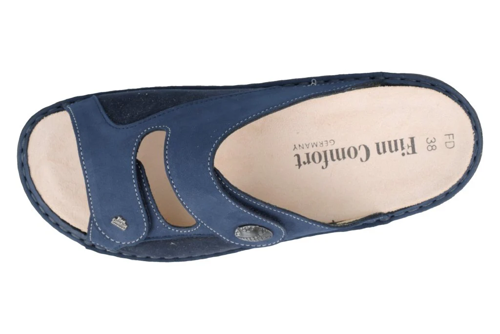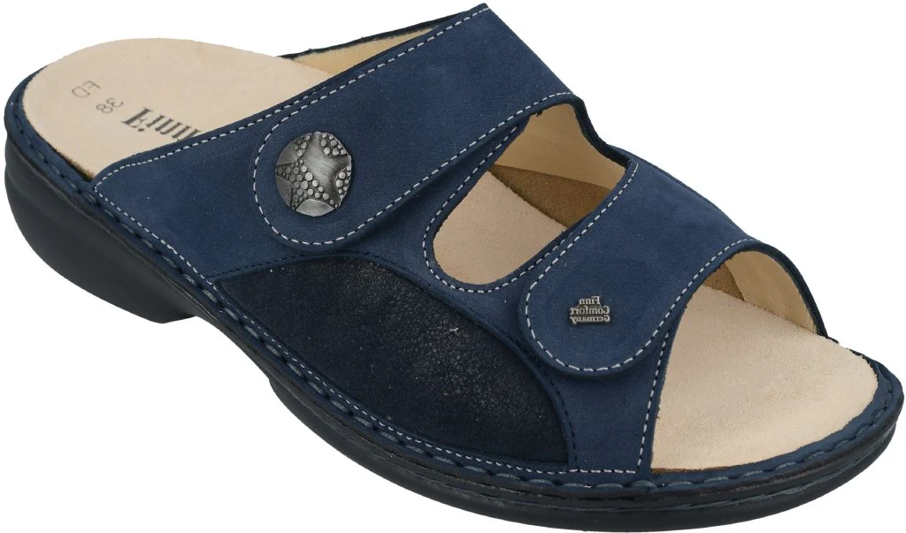 Ciabatta da donna della linea FinnStretch con una cambratura da 20 mm, dotata di plantare ultramorbido, ideale per piedi particolarmente sensibili. Due cinturini regolabili assicurano un adattamento al piede rapido e perfetto per garantire una tenuta sicura. La tomaia è dotata di inserti in materiale stretch, che si adeguano perfettamente al piede, riducendo dolori o disturbi causati dall’alluce valgo. La punta larga regala ampio spazio alle dita. Grazie alla cucitura a mano, la calzatura si adatta in modo flessibile ai movimenti naturali.