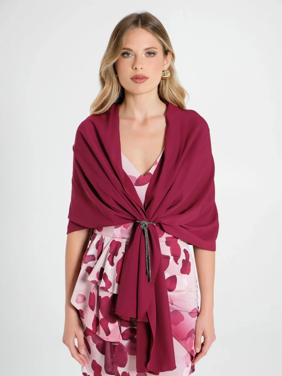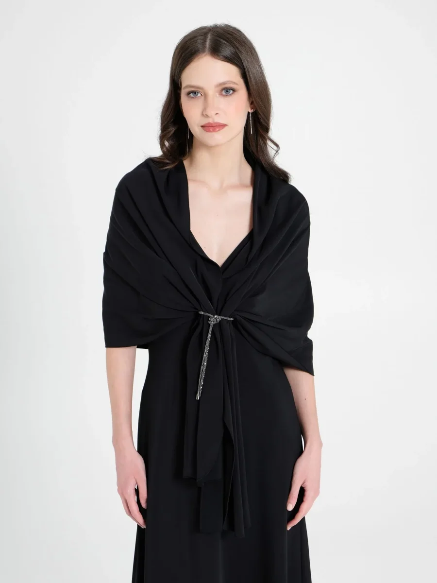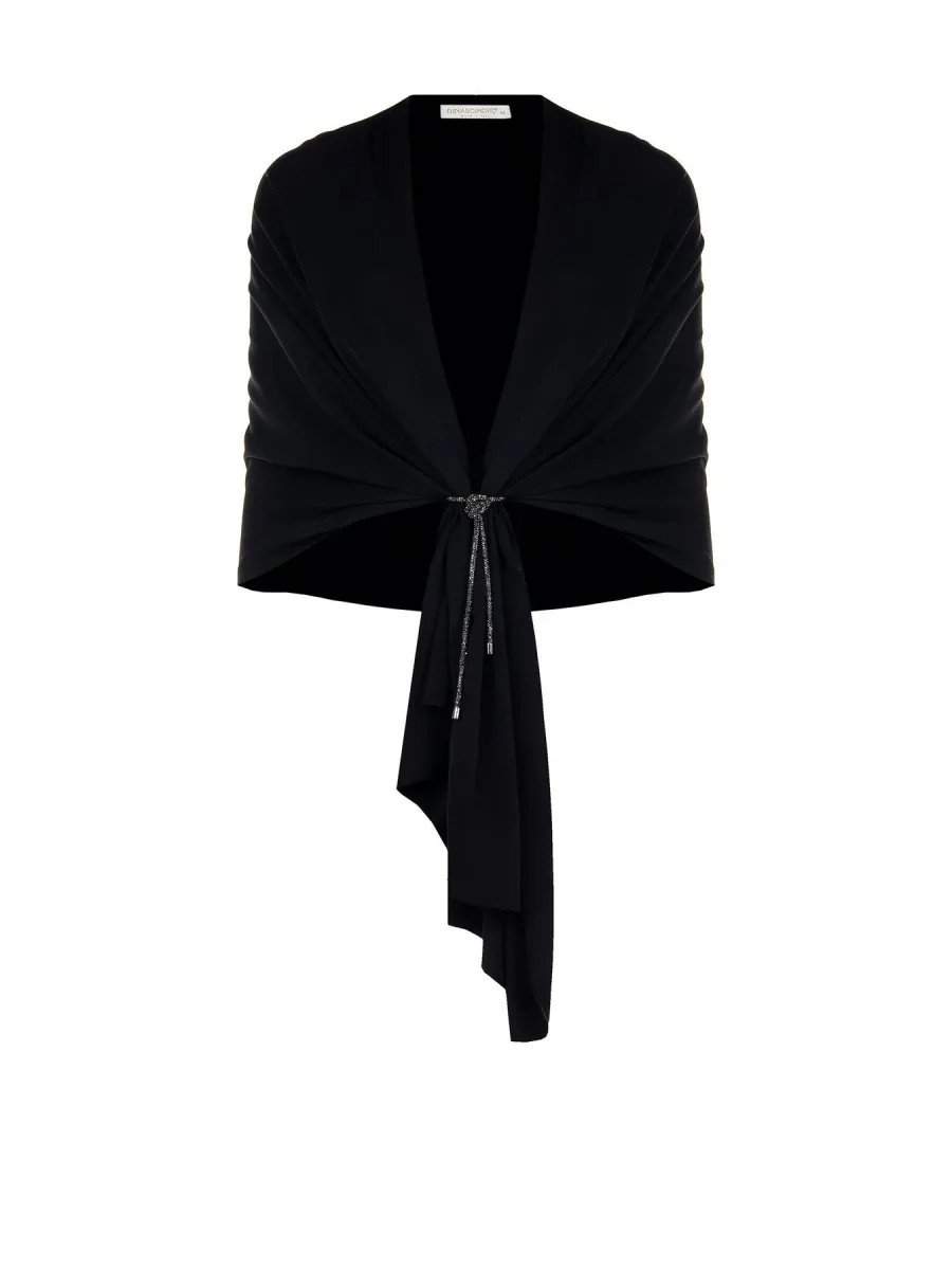 Stola realizzata in tessuto fluido, con anello gioiello strass. Il capo è interamente made in Italy.