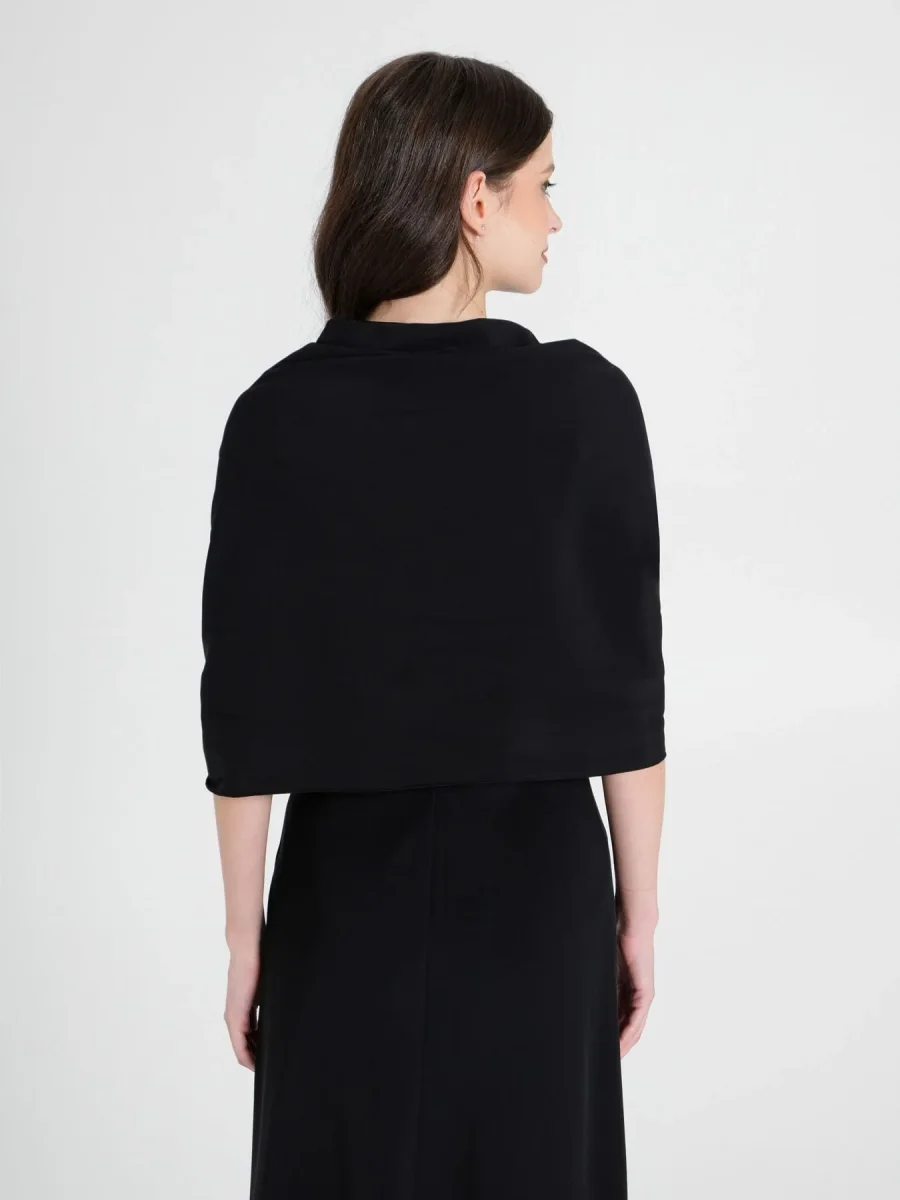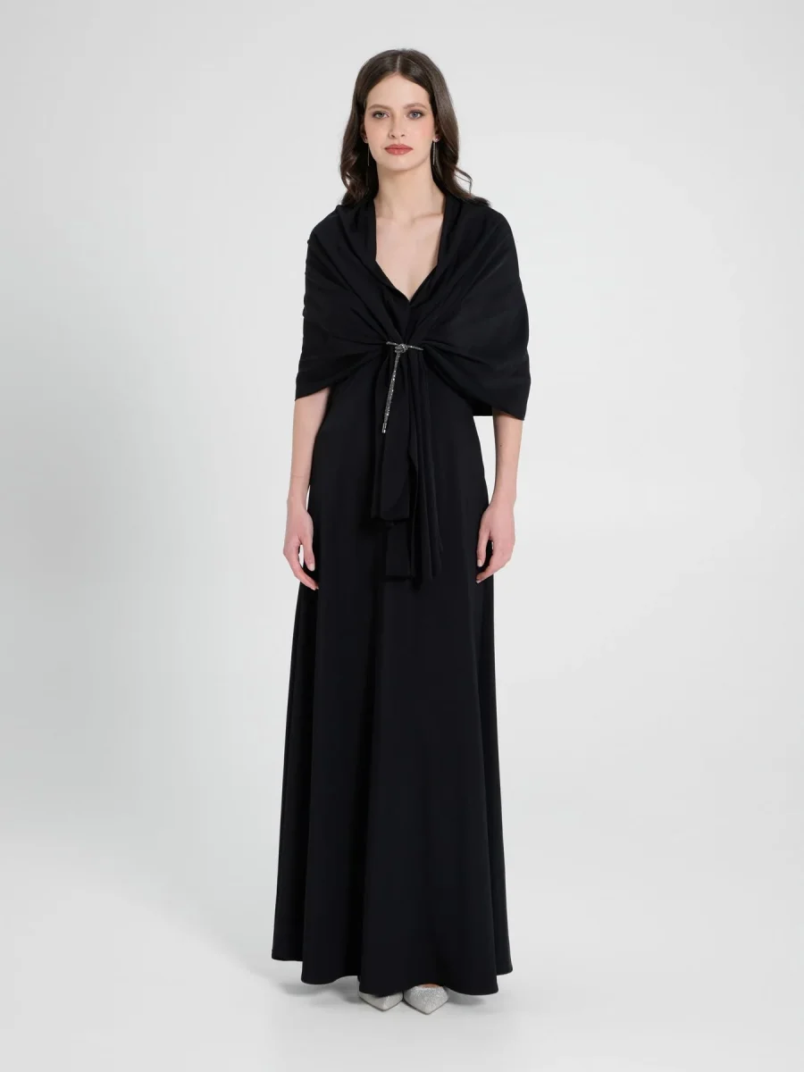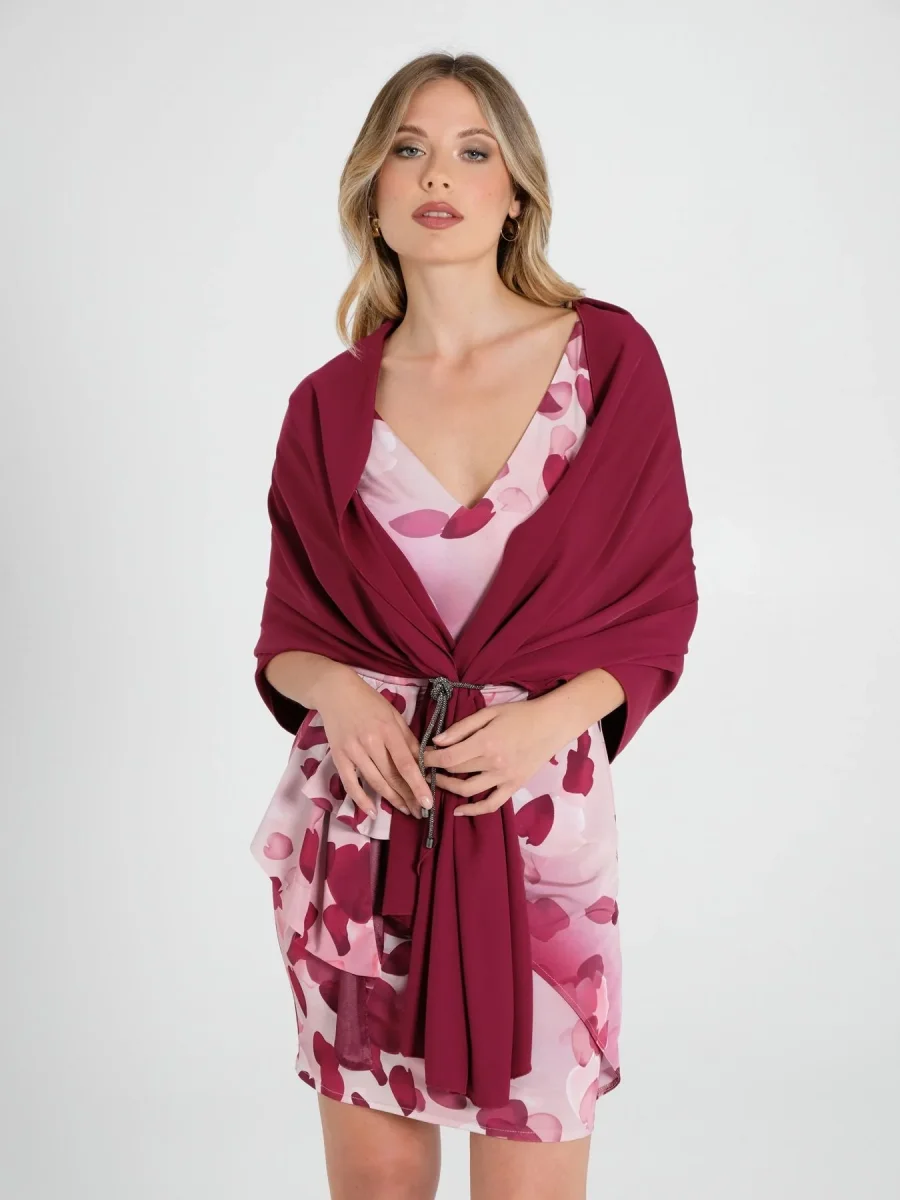 Stola realizzata in tessuto fluido, con anello gioiello strass. Il capo è interamente made in Italy.