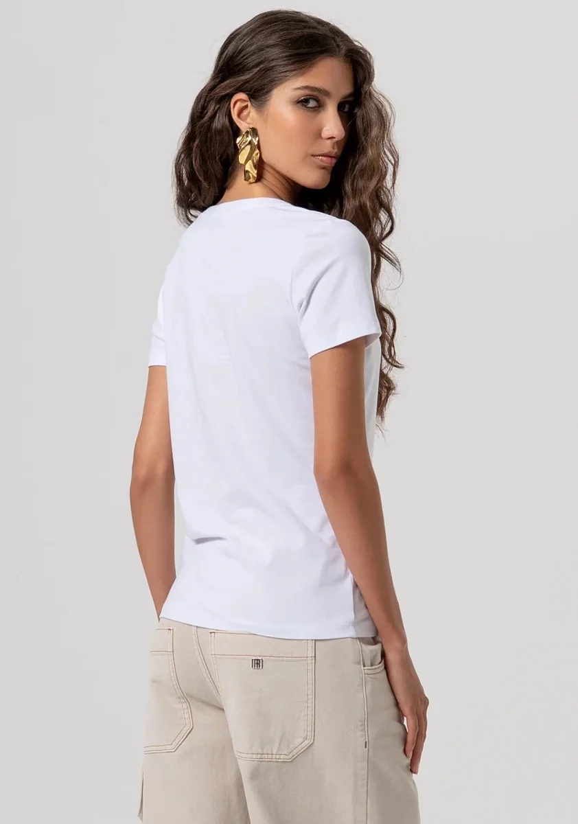 T-shirt maniche corte in jersey, girocollo, e con logo con strass luminosi.