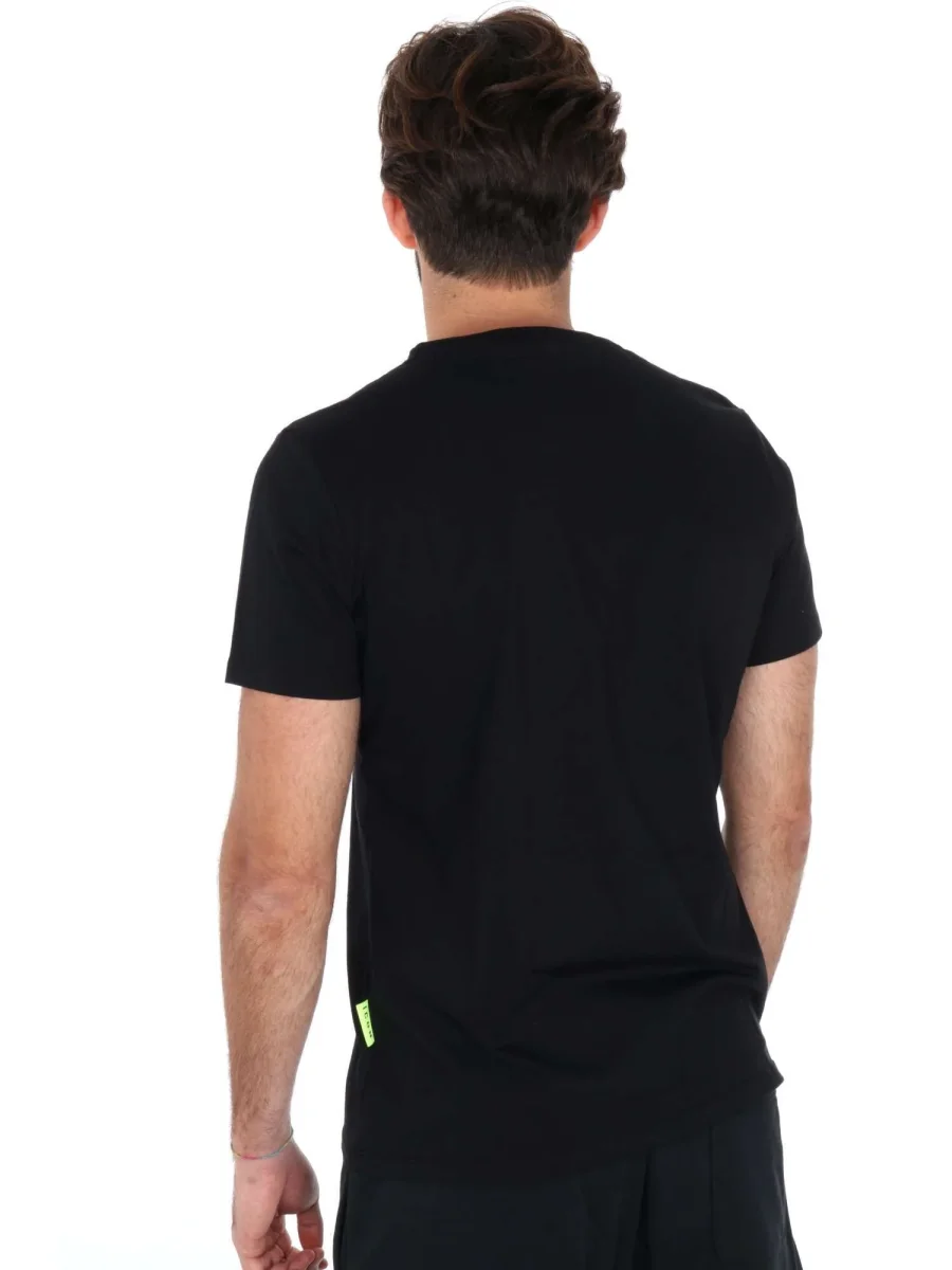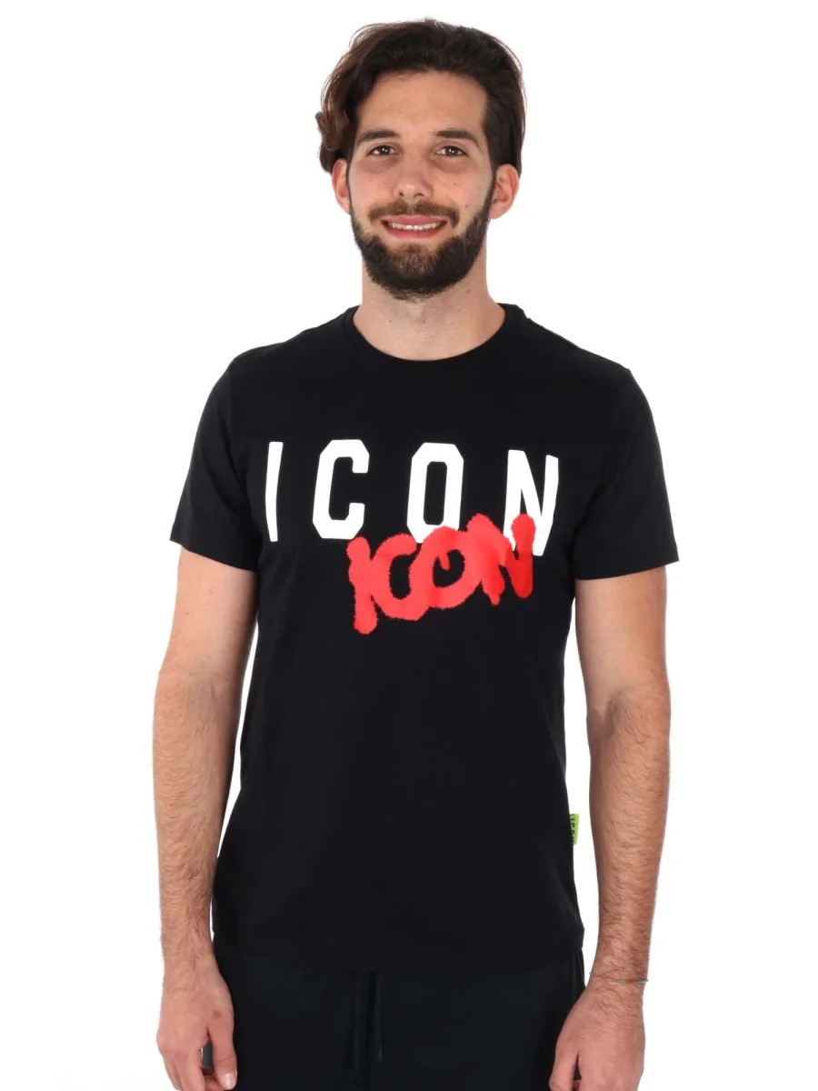 T-shirt manica corta da uomo della collezione primavera/estate Icon, realizzata in morbido cotone caratterizzato da maxi logo sul petto a contasto effetto spray. Presenta girocollo a costine, vestibilità regolare.