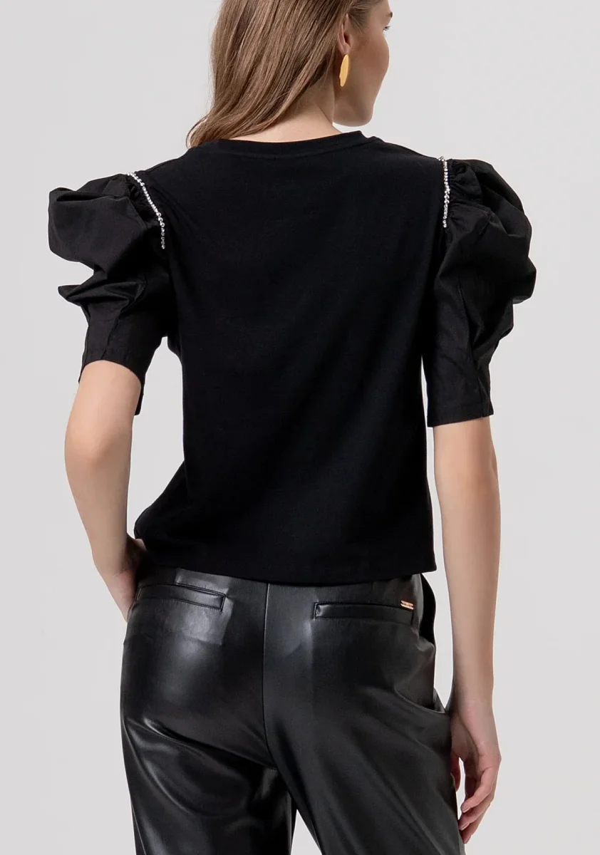 T-shirt regular in jersey, girocollo, applicazioni luminose, e con maniche in popeline a sbuffo.