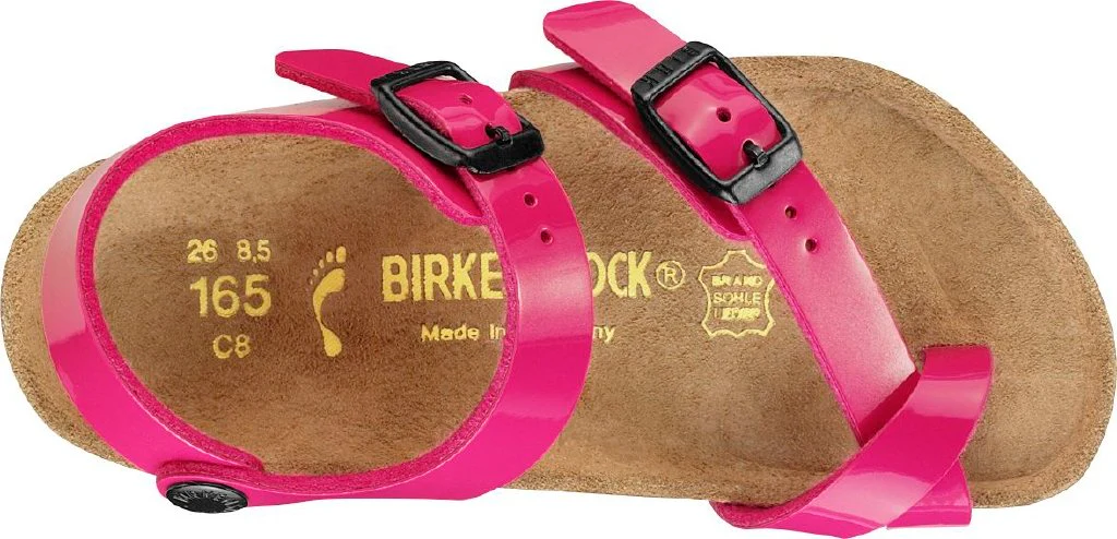Il modello BIRKENSTOCK Taormina coniuga il cinturino attorno all’alluce e al tallone a un delizioso design dalle linee fluide. La scelta ideale per tutte le bambine particolarmente dinamiche e attente alla moda! Il rivestimento in vernice del materiale sintetico Birko-Flor®, particolarmente dermoaffine e resistente, rende i sandali particolarmente luminosi.