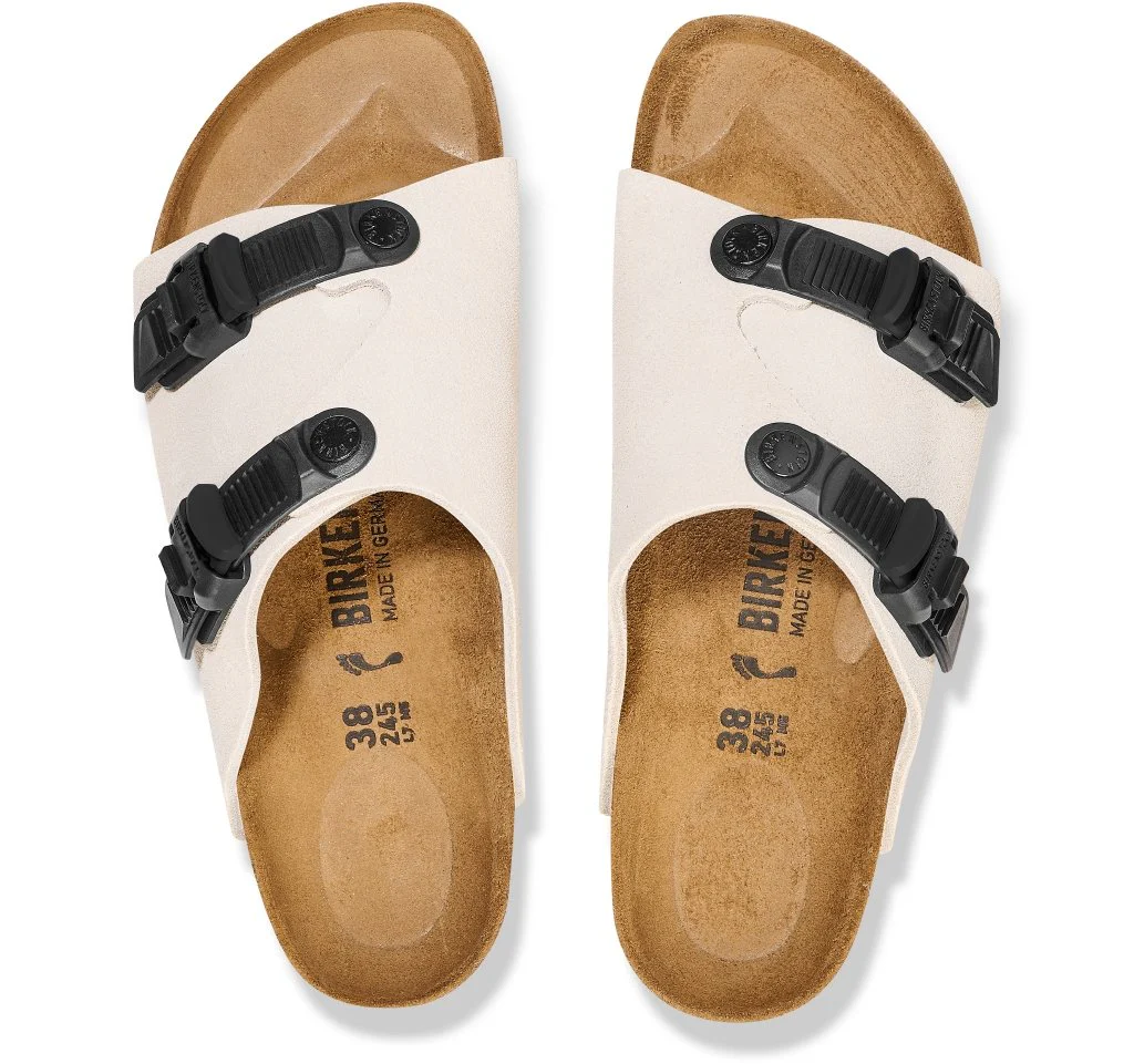 Due in uno! BIRKENSTOCK Zürich unisce la stabilità di una scarpa chiusa alla leggerezza di un sandalo. Qui il modello viene rivisitato in chiave sportiva. Le fibbie ‘ski closure’ total black completano l’aspetto street del sandalo. Al design contribuisce la tomaia in pelle scamosciata particolarmente morbida che abbraccia il piede come una seconda pelle.