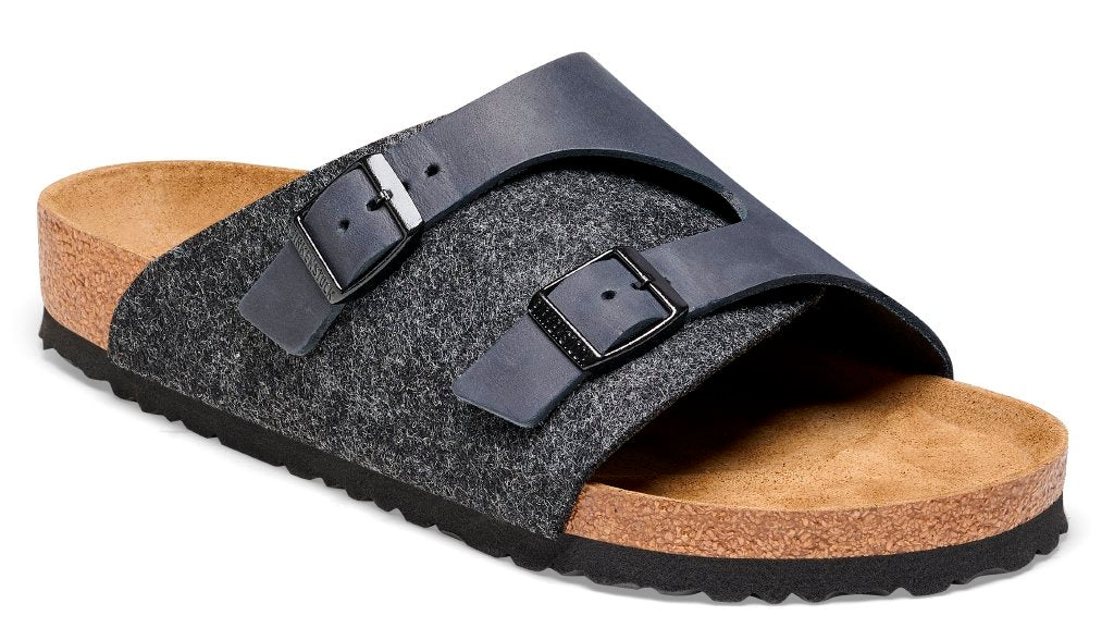 BIRKENSTOCK Zürich unisce la stabilità di una scarpa chiusa alla leggerezza di un sandalo ed è amatissimo da uomini e donne. Il modello è chiuso lateralmente ma permette al piede di areare sufficientemente grazie alle aperture sul tallone e sulle dita dei piedi. Questa versione è in un mix di materiali autentici e rustici di morbido feltro sintetico e spessa pelle naturale.